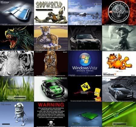 Selección de pantallas de arranque para Windows XP para todos los gustos. El kit incluye una utilidad gratuita Stardock bootskin 1.05a , con la ayuda de la que puede configurar fácilmente tu gusto de pantalla de arranque. A diferencia de otros programas de la misma clase de arranque la interfraz no cambia el núcleo de archivos, Windows, y por lo tanto hace que el cambio de la pantalla de seguridad. Además, esta tecnología nos permite alcanzar el mínimo tamaño de los archivos.